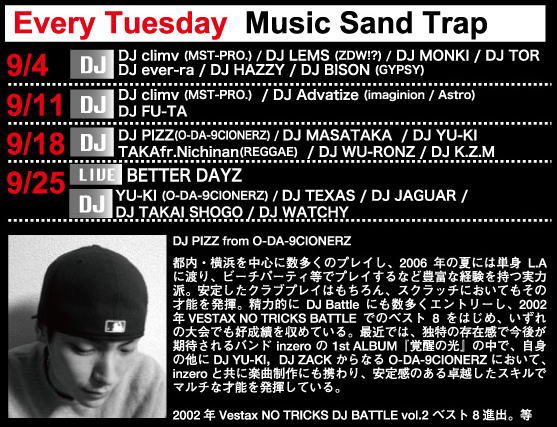 18 Music Sand Trap PIZZ (O-DA-9CIONERZ) K.Z.M WU-RONZ MASATAKA YU-KI TAKAfr.Nichinan (REGGAE) ...and more |