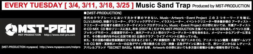 25 Music Sand Trap YU-KI (O-DA-9CIONERZ) TEXAS JAGUAR TAKAI SHOGO KAZUYA HAZZY ...and more LIVE: BETTER DAYZ M.S.Tインフォメーション:Performer & Staff wanted!! MAIL:info@mst-pro.com |