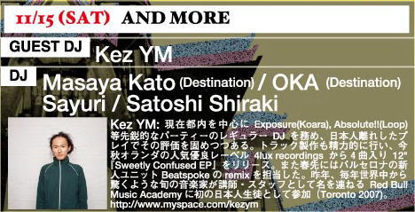 15 AND MORE Masaya Kato(Destination) OKA(Destination) Sayuri Satoshi Shiraki Guest LIVE: Kez YM |
