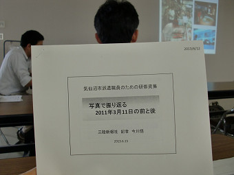 語り部の会 | 復旧・復興支援のため、全国から気仙沼市に集まった派遣職員、任期付き職員を対象にした語り部の会に行って来ました。三陸新報記者による震災前の気仙沼と津波体験、前気仙沼危機管理監による気仙沼の防災対策と教訓等。