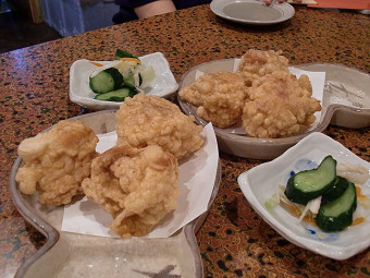 まずはおすすめの鶏の唐揚げ ![]() 「マンボウのこわた」さくさく感が良い。酢味噌で。「カツオのハラス焼き」 ![]() 「びんちょうのハラス焼き」これがご飯にすっごい合う。んまい。と、「ふぐの唐揚げ」 20