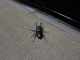 クワガタ | 夜、家のドアの前にゴキブリだー。と思ったらクワガタ。この辺りもたくさんいるらしい。100円均一に行くのにいつもこの山道(写真)を通ります。自然さいこー。