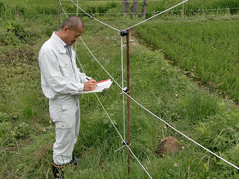 放射線測定 | 気仙沼市の小学校7校の校庭の真ん中で放射線測定。今日は自分の当番です。今日は暑かった。山の中にある学校のほうが放射線が高いってことは、木が放射線を宿ってるんだろうな。。 ![]() 18