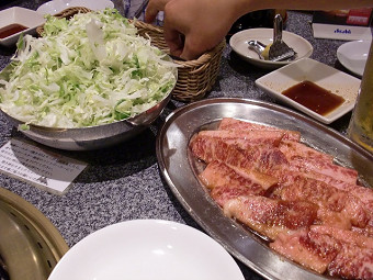 名物「気仙沼ホルモン」はキャベツと一緒に食べます。
