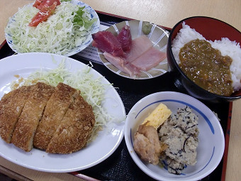 外構工事中の唐桑図書館、「食楽まるさん」で昼食。ほんと魚が美味い。 |