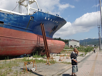 震災の爪痕 共徳丸、奇跡の一本松、安波山等を案内