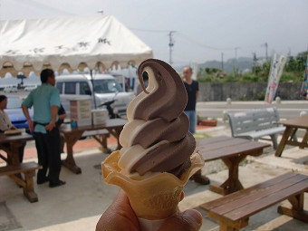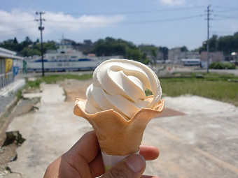 大谷海岸の「がんばろう家」のラーメンとソフトクリーム |