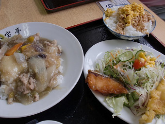 市役所食堂のお昼 特盛オムライスからのとんこつラーメン