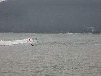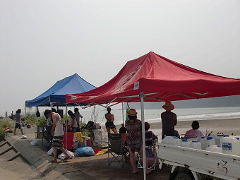 小泉海岸でサーフショップかぶとむし主催?のサーフィン大会やってた
