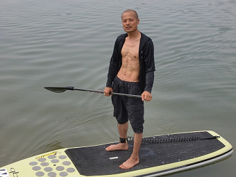 SAP サーフショップかぶとむし主催のSAPに乗るツアー。以外に安定感ないけどこれで波に乗れたら楽しいかも。