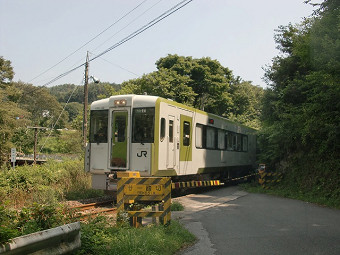 落合小学校に行ったときに踏切で一時間に一本の電車がちょうど通った |