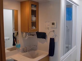 ミニキッチンとミニシャワールーム、トイレ |