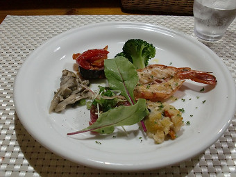 新鮮な牡蠣と地元素材をふんだんにつかったサラダ。うまい。 |
