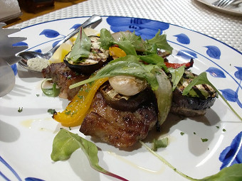 多くのボランティアと共に作ったログハウスの中で本格的なイタリアンが食べれる。