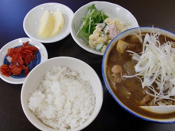 牛べェ〜 南町紫市場にある牛べェ〜、気仙沼ホルモンと牛タンが人気。今日の昼定食はカレーうどんでした。