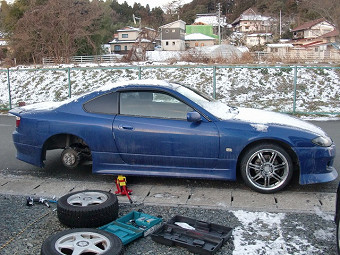 スタットレスタイヤ交換 | 最近雪がよくちらついてるけど、昨日の夜はガッツリ雪だったので、今朝タイヤ交換した。