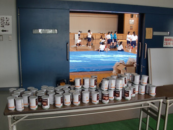 防災キャンプ二日目 体育館でダンボール就寝、背中痛い。。朝食は非常食の缶入りパンとコーンスープ。ロープワークを学ぶ。 ![]() ![]() |