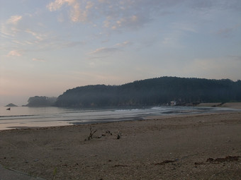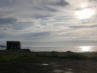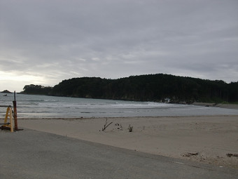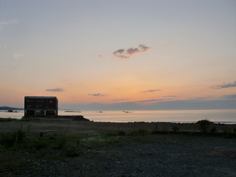 今朝の小泉海岸 右は鹿折にあるサメ皮工場に仕事で行ったときの写真 ![]() |