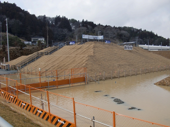 鹿折の共徳丸跡地 見学台となってます。雨でかなりの水たまりが。。 ![]() |