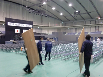 追悼式準備 本日は椅子とストーブの運搬 ![]() |