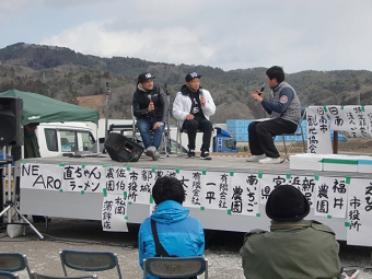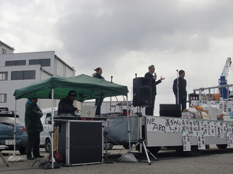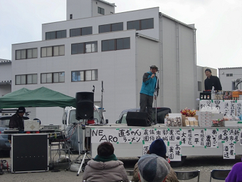 宮崎県日南市 復興イベント ![]() ![]() 市長の音響も ![]() MORITOさんとショウジさんのライブ ![]() 格闘家トークショー(宇野薫と勝村周一朗) ![]() 抽選会、気仙沼ひょっとこ踊り保存会、室根創作太鼓「鼓」等も |