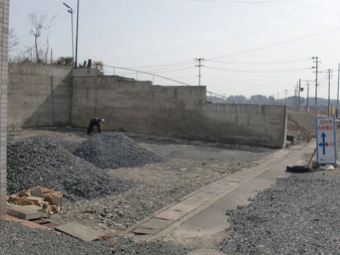 教育委員会の駐車場整備 スコップで砂利を広げる作業 ![]() |