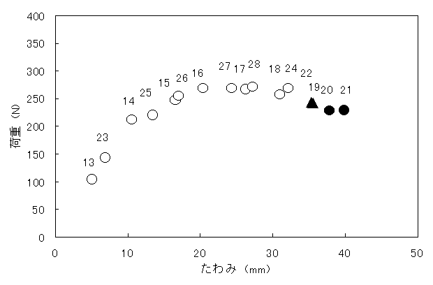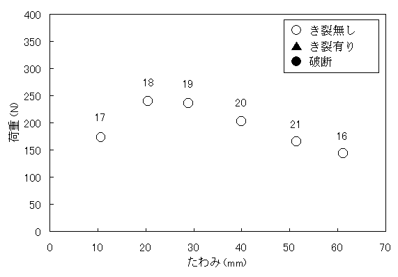 ○ き裂無し ▲ き裂有り ● 破断 |