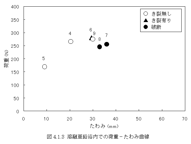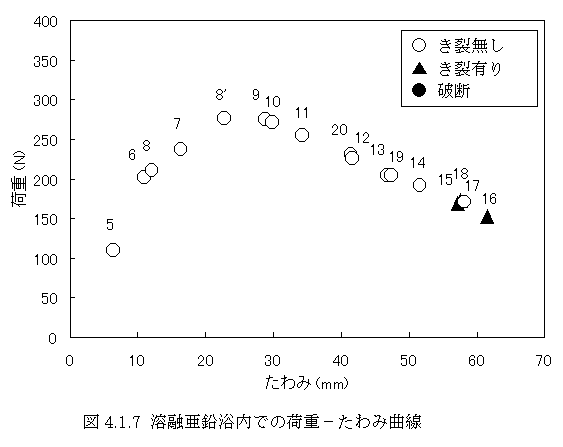 図4.4.5 溶融亜鉛浴内での荷重−たわみ曲線