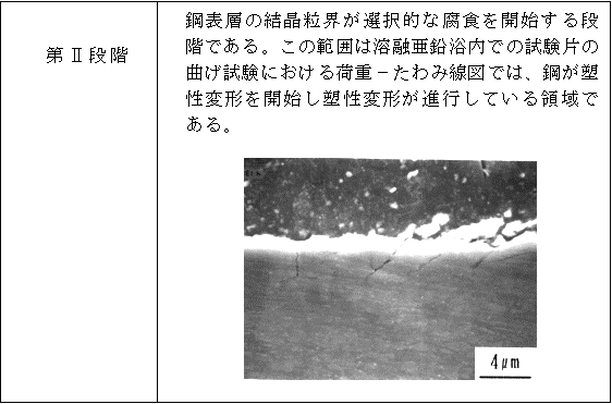 荷重−t曲線の測定では、溶融亜鉛浴内での最大荷重より低い荷重に負荷した後、その状態で数秒間保持されるため、前項で述べたき裂発生過程の3段階の第U段階と第V段階が明確に現れていた。Vladimirov19)は、液体金属ぜい化の一つである液体ガリウムによるアルミニウムのぜい化に関する研究の中で、アルミニウム粒界へのガリウムの浸透は、拡散によるものではなく、粒界腐食によるものであるという見解を述べている。