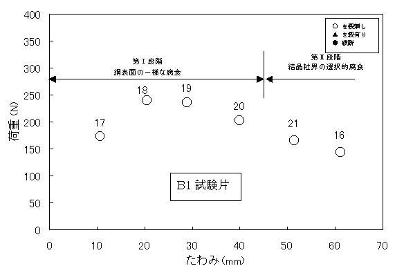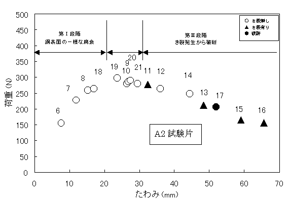 第U段階 結晶粒界の選択的腐食 図4.4.3 溶融亜鉛浴内での荷重−たわみ曲線