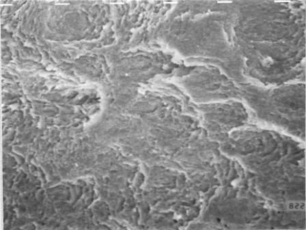 V溝試験片、U溝試験片の破断面観察は、本文第3章、図3.2.4〜3.2.7に示した大気中の曲げ試験によって得られた試験片、すなわち、溶融亜鉛浴内の荷重−たわみ曲線を測定するための試験で破断した試験片及び、溶融亜鉛浴内で荷重−t曲線を測定するための試験で破断した試験片を走査型電子顕微鏡で観察することによって行った。写真4.3.4(a),(b),(c)は、それらの代表的な破面写真である。