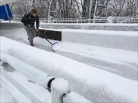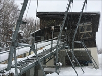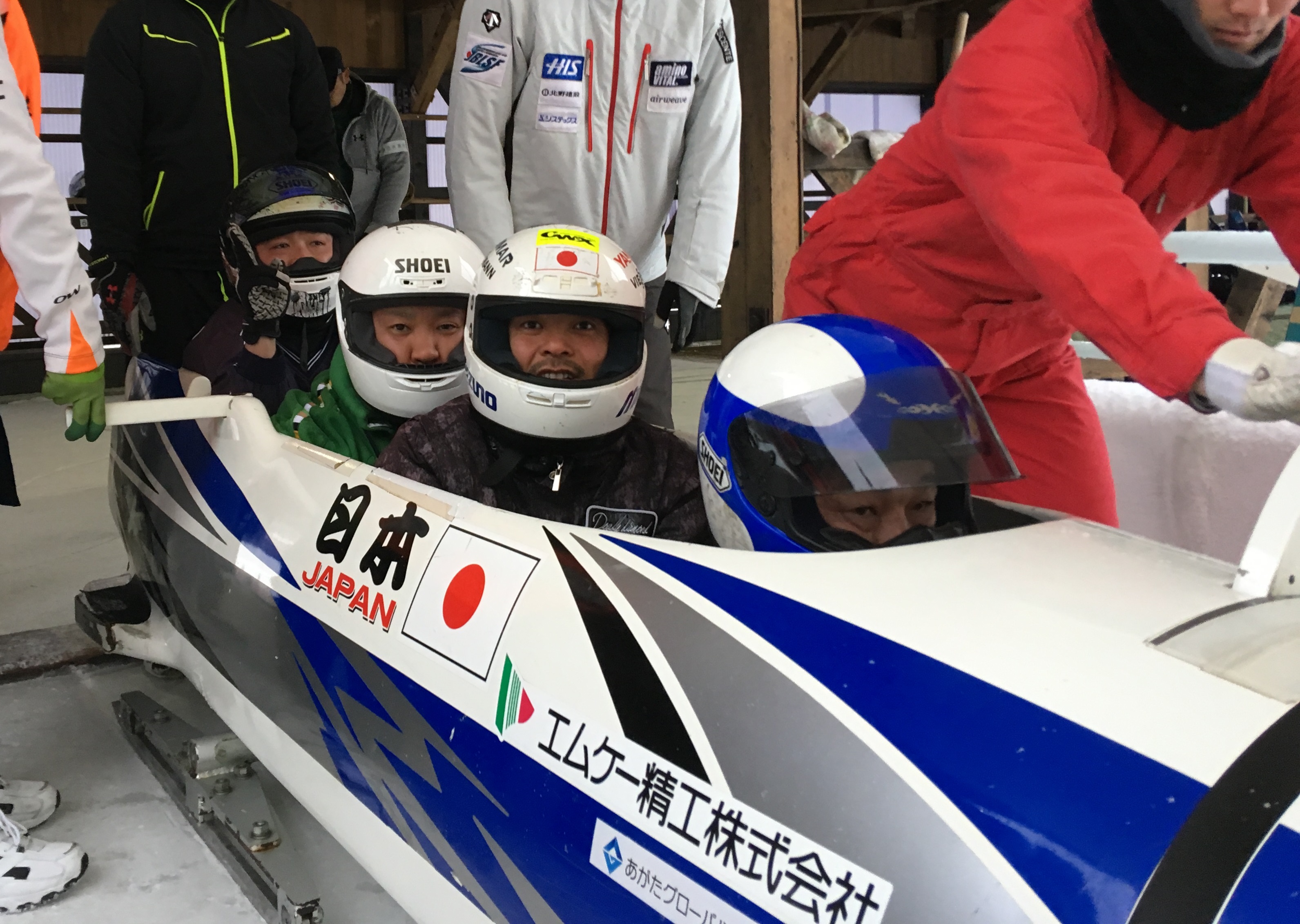 第1弾 氷上のF1 ボブスレー 〜長野スパイラル〜 四人乗り 先頭の人がハンドルを操作、 三人がソリを押して飛び乗る。 その後は体重移動でコントロール、 100km以上のスピードで走るので 顔を下に向けると上に戻すのが大変 |