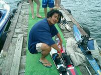 モーターボートにひかれ