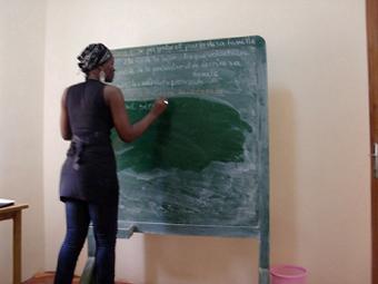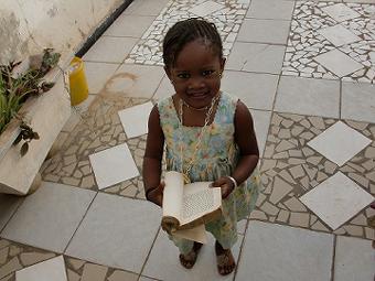 バケツ一杯の汚れた水で シャンプーをちょこっと使い水浴びと歯磨き。細菌たくさんいそうだけど普通に飲んじゃってます。だって子供がいつも砂糖を混ぜた水道水くれるし、もう免疫もついたはず。昼食のセネ飯はオクラ入りのカレーみたいな感じ。今日もビサップジュース(赤い実の甘いジュース)が美味い。午後はセネガル文化の勉強、日本と違い身分と階級があってどんなに良い人でも長にはなれない事やイスラム教徒ばかりなので17:00とかお祈りの時間は待ち合わせをしてはいけない事等を学びました。写真は聖書をくれる妹のAIDAと授業中のFatou先生 ![]() |