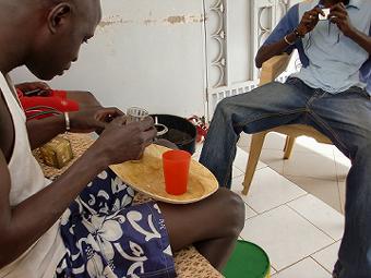 セネガルの習慣、アタイヤ(甘すぎるお茶) なんでもそうだけど、セネガルの飲み物は砂糖が入りすぎ、毎回甘すぎて喉が痛いです。でも家で二日に一回くらいでます。しかも夜の12:00くらいに。基本二杯飲むらしく、毎回厳しいです。今日の昼はGale Routiereに行き、いつものバナナ1kg(6本)600cfa(120円)で買い、今日は良い感じのニット帽を1500cfa→1000cfa(200円)にまけさせて買った。写真はAdeshinaで先生達とアタイヤと、家で従兄のMarcelとアタイヤ ![]() |