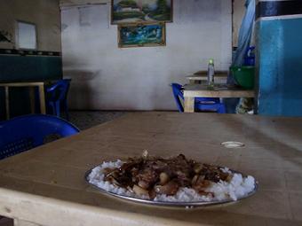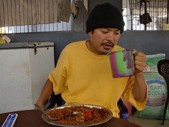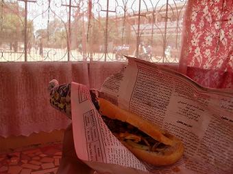 カオラックの屋台 先輩と三人で置き撮り中に子供がちゃっかり入ってきてポーズまで決めてました。帰りにカオラックの屋台でチェブジェンを食べた。カオラックの水道水は塩分が多くてしょっぱいです。最近はバケツで飲む水道水に何も抵抗がなくなりました。ちなみに自分の住むティエスからカオラック(ガラージダカール)までセットプラスで4時間3,000cfa(600円)、そこからタクシーコレクティブという乗り合いタクシーで10分くらい先にあるセットプラス乗り場(ガラージニオロ)まで200fcfa(40円)、そこからニオロ方面のセットプラスが2,200fcfa(440円)です。ギュウギュウづめの車内は相変わらず不快指数100%です。 ![]() |