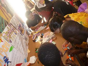 日本祭 in CDEPS タンバクンダ タンバクンダ青少年センター(CDEPS)にて、日本の遊びコーナー、遊び展示コーナー、手洗い啓発コーナーを作り、兜とはどんなものか説明して、新聞紙で一緒に兜を折ったり、缶ぽっくりで子供を遊ばせたり、万華鏡・たて笛・紙風船・お手玉・けん玉の展示と遊び方の説明。また、手洗い啓発コーナーでは、なぜ手洗いをしないといけないのか、正しい洗い方を説明し、手洗いのデモンストレーション。ポイ捨てや手洗いの劇を行ったり、ソーラン節。そして最後はフィムラ隊員による三線とギターの演奏で全員で歌を唄い、子供に飴を配って終了。自分は日本の遊びコーナーで、主に折り紙を子供に教えてました。やっぱり手先が器用な人はいません。大人でも折り紙は厳しい感じでした。見た感じ参加者は200人くらい。よく日本というと侍と言われるけど、本当の日本文化を伝えられたと思います。これをいろんな場所で継続的に行ったら手洗いや素手で食べない日本の良いところを真似してくれて病気が減るのではないかと思う。