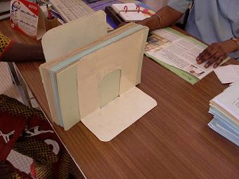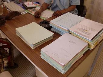 書類を縦に置く大切さを伝える 今日も朝早く起きて今度は電気代と電話代を払いに行く。これまた7:30のオープン前に。靴裏がまた剥がれて、瞬間接着剤はどこに売ってるの??ってDialloに聞いたら隣のOrthepedi(整形外科)に行けと。あ、その手があったか。義足技師のおっちゃんに快く修理してもらった。病院給食室行ったらクスクスを作ってて、アルベー食べてけと言われ、これから通おうかな。病院も良いとこたくさんあるな。で、仕事のほうはというと、昨日作ったブックエンドを使い書類を積み重ねないで縦に置くと整理されて機能向上に繋がる理由をSTMのみんなに説明したら納得してくれた。それをどう続けていくかだな。ブックエンドも弱くて改良が必要だし。 ![]() |