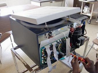点滴皿とカルテ入れ取付 一週間ダカールにいたら点滴皿とカルテ入れが完成してた。一本の錆びた棒を切断して作った点滴皿をDiopとペンチで壁から出てる棒に無理矢理取り付ける感じで院内を回った。半分は自分が取り付けたんだけど点滴に小さい虫がたくさんついてたり、点滴に血が逆流してるのにそのままだったり、床はゴミだらけ。この病院を変えるのは大変だと思う。今日も自分が出来る事をコツコツです。その後、多用途モニターが壊れたらしくメンテナンス部に持ち帰って電源を入れたら煙が出た。。中を開けるとトランスが燃えてた。ゴミ機材置き場から壊れてる同じモニターの半分を移植して修理完了。二個一だ。でも午後はずっと停電でテスト出来ず。 ![]() |