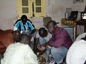 STMみんなでご飯 今日はYasineがメンテナンス部全員のご飯を作ってくれた。パンと鶏と玉ねぎソース、これ定番。美味い。みんなで1,000fcfa(200円)づつ集めてジュースとアタイアと音楽でちょっとしたパーティー。自分のデジカメでBathigiがいろいろ撮ってくれて、すぐAssanのパソコンでみんなで笑いながら見る。ここはみんな本当に自分を受け入れてくれていて居心地いいです。 ![]() |