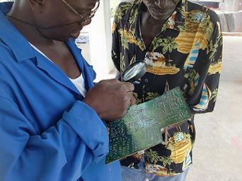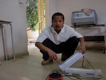 停電になると点灯する蛍光灯の修理 停電が多いので停電すると自動的に点灯する蛍光灯がたくさんあります。でもこれも中国製の安いものなのでよく壊れます。病院内もたくさんあって、修理依頼がよくきます。ハンダ不良だけならハンダ付けで直りますが、ハンダ不良で配線(部品)と基板にギャップが発生し、接触不良で点灯(火花)を繰り返し燃えたと思われるものが多く、今日も古い機器から基盤ごと交換。自分は電気技術はあまりないけど、この国の修理方法(二個一作戦)なら十分出来ます。 ![]() |