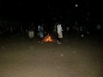 ボーイスカウトキャンプに参加 セネガルの各地域よりボースカウトチームが集まりティエスで合同キャンプを行っている。それに参加している先輩に合流しキャンプに参加させてもらいました。子供から大人まで200人くらいのメンバーが学校を借りて行っています。キャンプの内容は一日に何度か体系練習で集まり、昼間は課外授業で町に出たり、夜は儀式のようなキャンプファイヤーが行われた。そこでリュット(セネガル伝統相撲)に参加。腕立てやスクワット等の体力づくりから始まりリュットの模擬試合。ランボーというボーイスカウトのチーフに基本を教えてもらい特訓。かなり疲れました。試合前のダンスを覚え、試合は夜の11時くらい。結果は負けたけどリュットに参加できて良かった。
