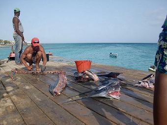 Sal島→Santiago島 Santa Mariaからジェットスキーに乗りPonta Pretaまで行ってみる。やっぱりSal島は綺麗だ。。ジェットスキー久しぶり。4級船舶免許持ってるから何回か乗ったけどまさかアフリカで乗れるとは。写真はみんなで大きなカジキ?!をさばいてた。その後、夜の便でSantiago島に戻る。 ![]() |