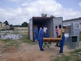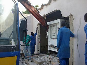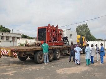 大型発電機二台来た セネガル政府に要望してた大型発電機が今日来た。でかいけど中古じゃん。中見ると意外と古いし。。でも二台あればちょっと安心。さらに今使っている半分壊れた発電機を後日廃棄して、その場所にもう一台来る予定です。クレーン付きのトラックが来たけどリフトがない。ここにどうやって入れるかみんなで悩んだ結果、Ramine dialloが長い鉄筋を切りだした。それを敷いてクレーンと人力で押したり引いたりする作戦をとった。 ![]() そのまま入らないので飛び出てる部品を外したり、壁を壊したり、無理矢理クレーンで押すから発電機も傷つきながらの作業。予想通りかなりの時間がかかり夕方の18:00にやっと入った。そして今日も病院食のチェブジェンを食べちゃいました。 ![]() |