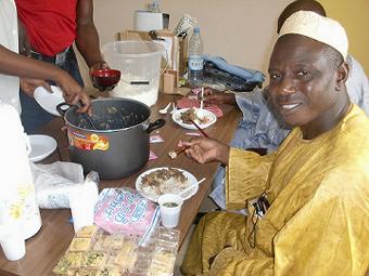 久しぶりのセネ食(チェブヤップ) 今日も厨房のおばちゃんに会い、病院食をいただく。今日は牛肉のせチャーハンみたいな感じのチェブヤップ、セネ食はやっぱ美味いな。ターラにも家でご飯を食べないか?、と誘われたが今日は断った。帰りにマルシェによりいつものようにキャベツ10個1,000fcfa(200円)、人参1kg500fcfa(100円)、オクラ1kg400fcfa(80円)を買ってきた。また、このページ一週間分更新。 ![]() |