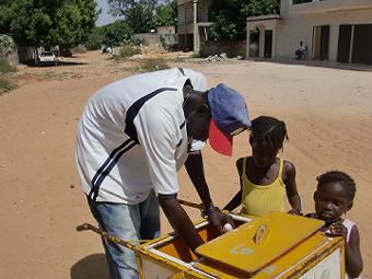 ンブール近郊の漁村ポポンギーヌ(Poponguine)でワークショップ 首都ダカールからンブール行きのセットプラスに乗り、途中のSindia(シンジャ)で降りて、Ndayane(ダイアン)行きのミニカールに乗りNdayaneで降り、ポポンギーヌへ。魚系ボランティアによる生態系についての環境問題アトリエや資源管理アトリエ等を行った後、自分と先輩二人で日本の音楽の紹介と手洗いの必要性の歌等を演奏した。 ![]() 自分が作ったカホンに興味があるらしく、帰りに子供がたくさん集まってきた。この国では音楽といったらジャンベ(タイコ)が主流でちょっと似てるしな。この村はセネガルでは珍しい丘もあって綺麗なところでした。 ![]() |