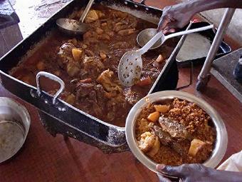 レンタル音響、セネガル食「サガサガ」 アッサンの知り合いで音響レンタルをしている人がいて、行ってみた。32オームのアンプ、良いかも。マイクも4つある。交渉の結果3時間借りて25,000fcfa(5,000円)になった。帰りにアッサンの親戚の家でご飯をいただく、今日はSagua-Sagua、マニョックの葉とパーム油が入ったスープカンジャ風のセネガル食。右の写真はアッサンと中央酸素室の圧力や水分のチェック。 ![]() |