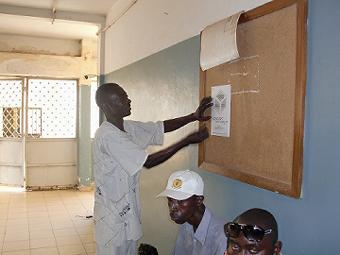 木工倉庫を整理 今日はDoudouと給水塔下にある木工倉庫を整理。帰りに裏門のガルディアンと清掃員となぜか記念写真。来週予定しているコンサートの許可をとりに中央棟に行くが今日も副院長はいない。看護部長と院長秘書に説明した。昨日ラマダンが明けて今日も若干お祭りが続いているので患者が少ないです。今日は月始めなのでマダムデューフと先月のメンテナンス統計を計算する。それと、衛星携帯のテストと保健月報を作成。 ![]() 来週のコンサートポスターの木枠をゲット ![]() |