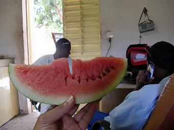 コンサートのポスター貼り 院長代理のバップと打ち合せをしたところ、あまり大きな音を立てずスピーカーは外に向けたほうが良いと。また、SQHS(質管理・衛生管理課)のンディオゥックはコンサートの客が多くて道がふさがったら救急車が通れなくなるのでは?と言われた。自分もそう思ってジャンダルメリー(憲兵隊)の援助を求める書類を作っていたが、ターラとジャロが病院側でなんとかするから良いという。明日は病院のガルディアンを集めて説明しようかな。今日は外科・内科・小児科・婦人科・手術室等のMajor(責任者)に説明して、ポスターを張らせてもらった。 ![]() 毎日食べてるマンゴー、季節が終わり最近見なくなりました。それに替えてスイカが街に溢れてます。今日はメンテナンス部のみんなで食す。先月オセイヌーと空き缶に植えたマンゴーの種から芽が出てきたので裏庭に植えかえた。食べられるのは5年先だから自分は食えないけど。。 ![]() |
