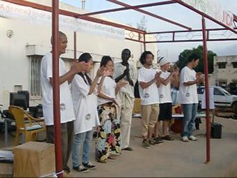 病院コンサート 入院している子供達を元気づける為のコンサート企画、当日を迎え、アッサンと二人で椅子を借りに近所の家を回り、交渉して一脚約50fcfaで100個の椅子を借りた。馬車で二往復400fcfa(80円)。16:00スタートなのに音響の到着が16:00、開始は17:00でした。セネガルなので全く問題ないけど。セネガルで有名な曲Vivianの「champion」「waaw」から始まり、Yussou N'dorの「Li ma weesu」、島唄・涙そうそうをタリベ缶で作った三線で演奏し、「La joie」で子供と戯れ、絢香の「Jewelry day」と「上を向いて歩こう」で日本の曲を紹介し、Shakiraの「wakawaka」でみんなで歌って踊って、途中ユーザーでダンス大会会場となった。そして、自分が作曲した歌を歌って踊って、コンサートは大成功。会場整理や電源の確保等、メンテナンス部の同僚が協力してくれて、本当に感謝です。100個の椅子は20人のタリベ(物乞いの子供)に一人25fcfa(5円)をあげて持ってもらい、一緒に返却。コンサート後もいろんなセネガル人からコンタン(嬉しい)という言葉を何回も聞き、自分がいるここ「セネガル」は幸せで満ちてます。 ![]()